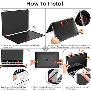【Facile da installare】Due pezzi di design a scatto sono facili da installare e rimuovere. Pieno accesso a tutti i pulsanti e le funzionalità senza rimuovere la custodia. Il coperchio inferiore è completamente ventilato per assicurare la buona ventilazione del tuo notebook, per evitare il surriscaldamento del tuo pc. I quattro piedini di gomma offrono un supporto sicuro, stabile e antiscivolo.